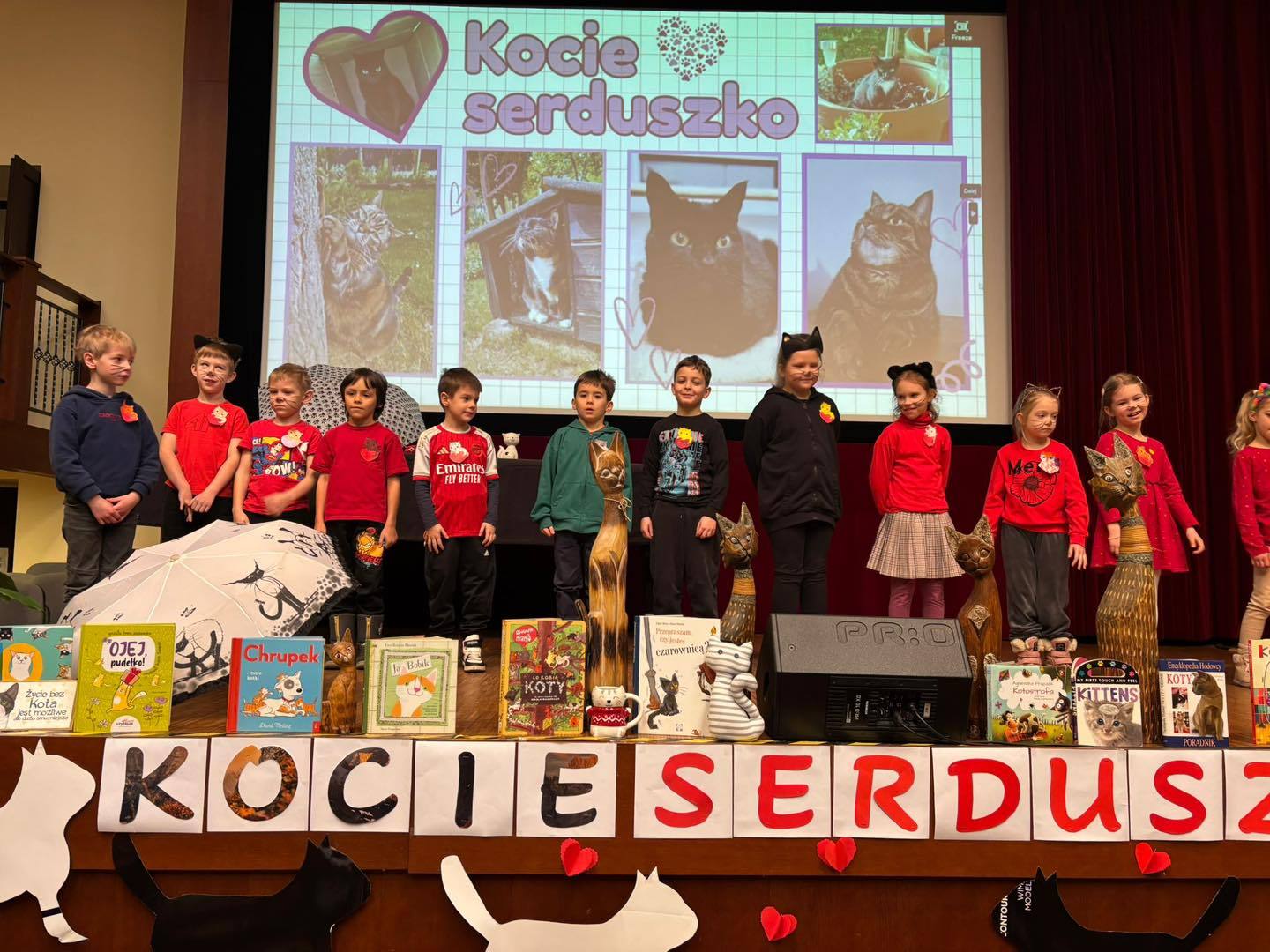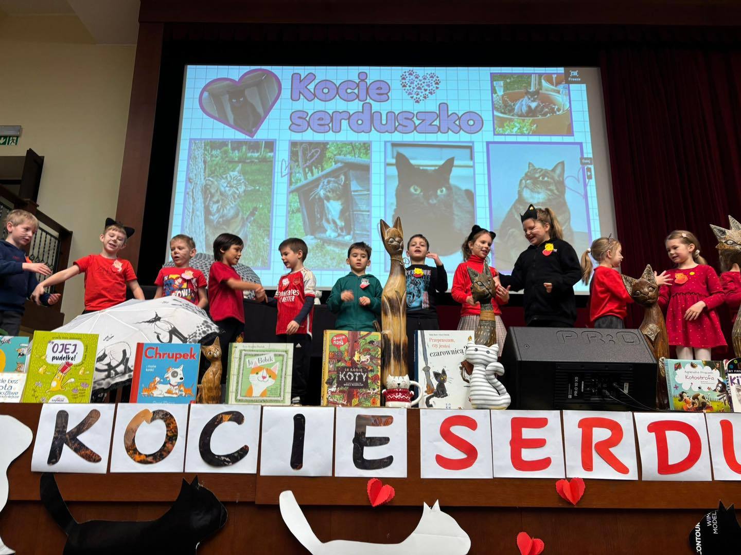 Tuż przed feriami zimowymi uczniowie klasy 1d wzięli udział w niezwykłej imprezie pt. „Kocie serduszko”, zorganizowanej przez Miejską Bibliotekę Publiczną w Mikołowie. Było to spotkanie pełne radości, ruchu i twórczej zabawy.
