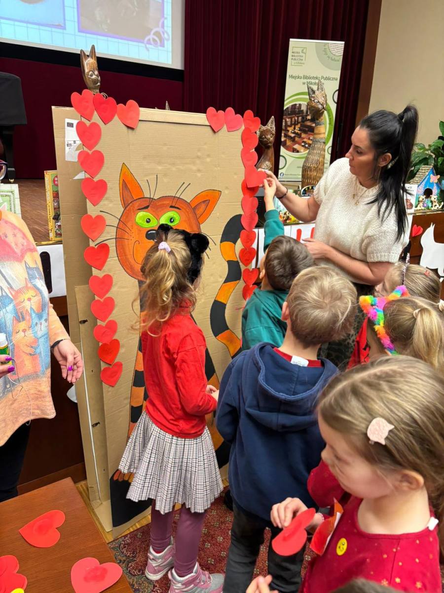Po części artystycznej na dzieci czekały kolejne atrakcje. Wzięły udział w „kociej gimnastyce”, która dostarczyła wszystkim mnóstwo energii i śmiechu. Na zakończenie uczniowie wykonali serduszkową pracę plastyczną, rozwijając swoją kreatywność i zdolności manualne.