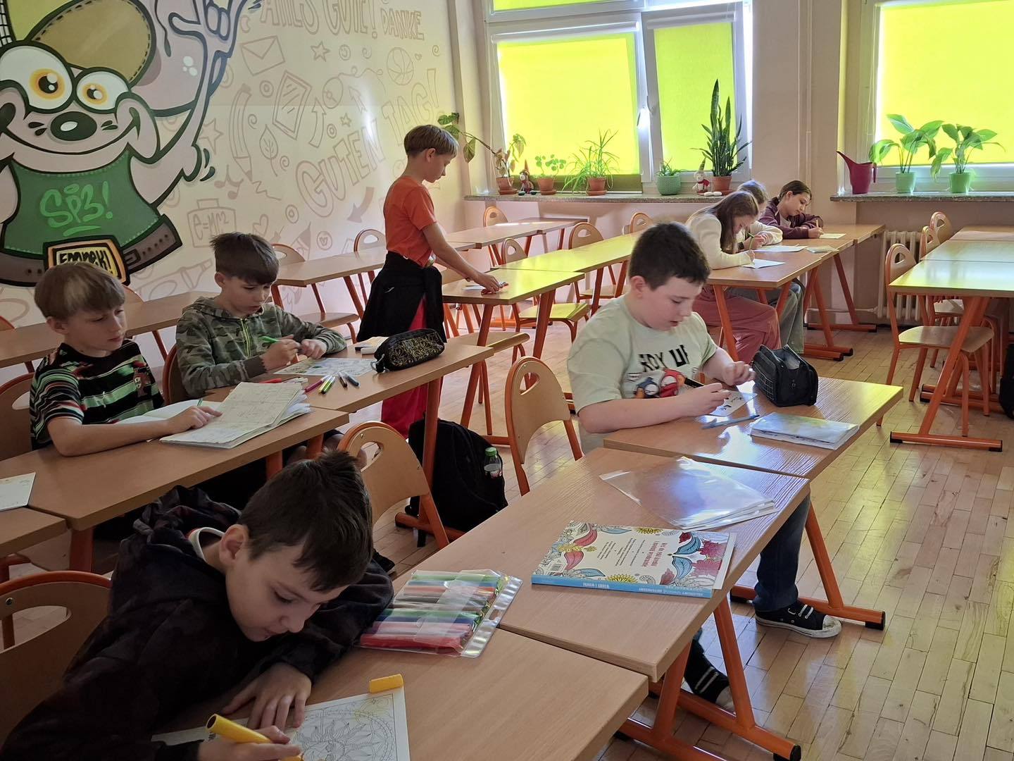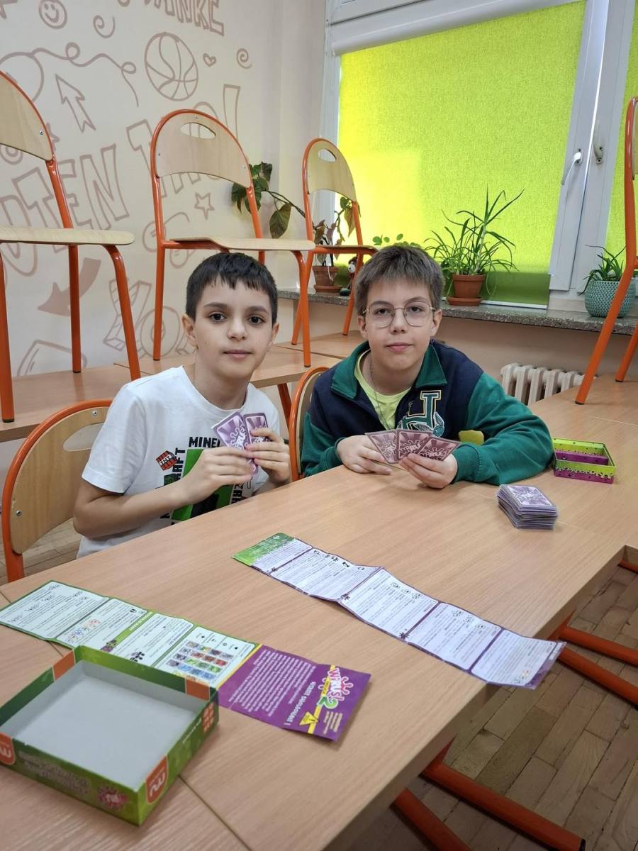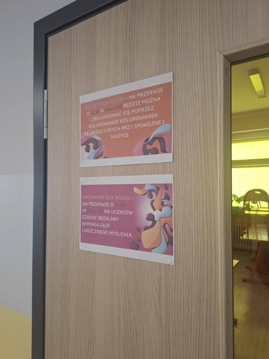 Na uczniów w czasie przerw czekały zarówno momenty wyciszenia przy relaksujących kolorowankach, jak i intensywny trening „szarych komórek” z wykorzystaniem gier karcianych i logicznych. Dodatkowym impulsem dla mózgu były rozłożone na korytarzach łamigłówki, które zachęcały do gimnastyki umysłowej w przerwach między lekcjami.
