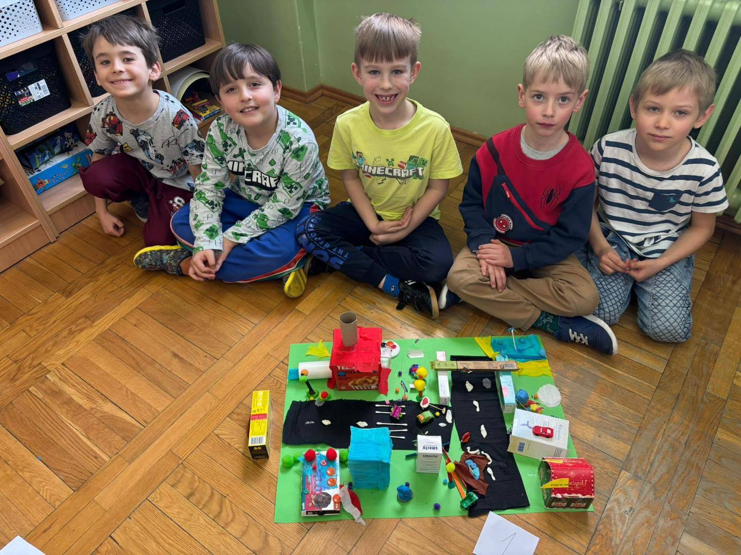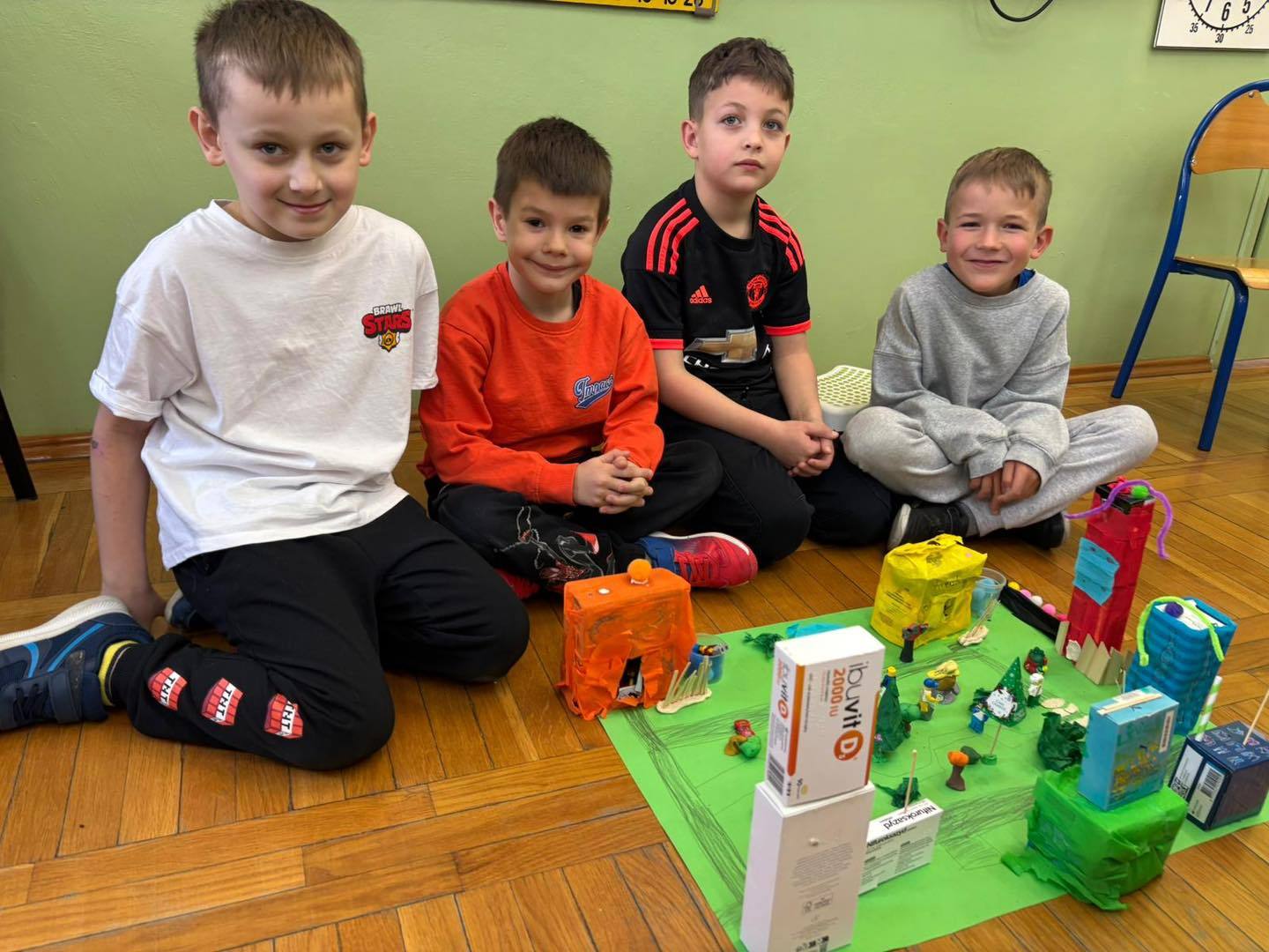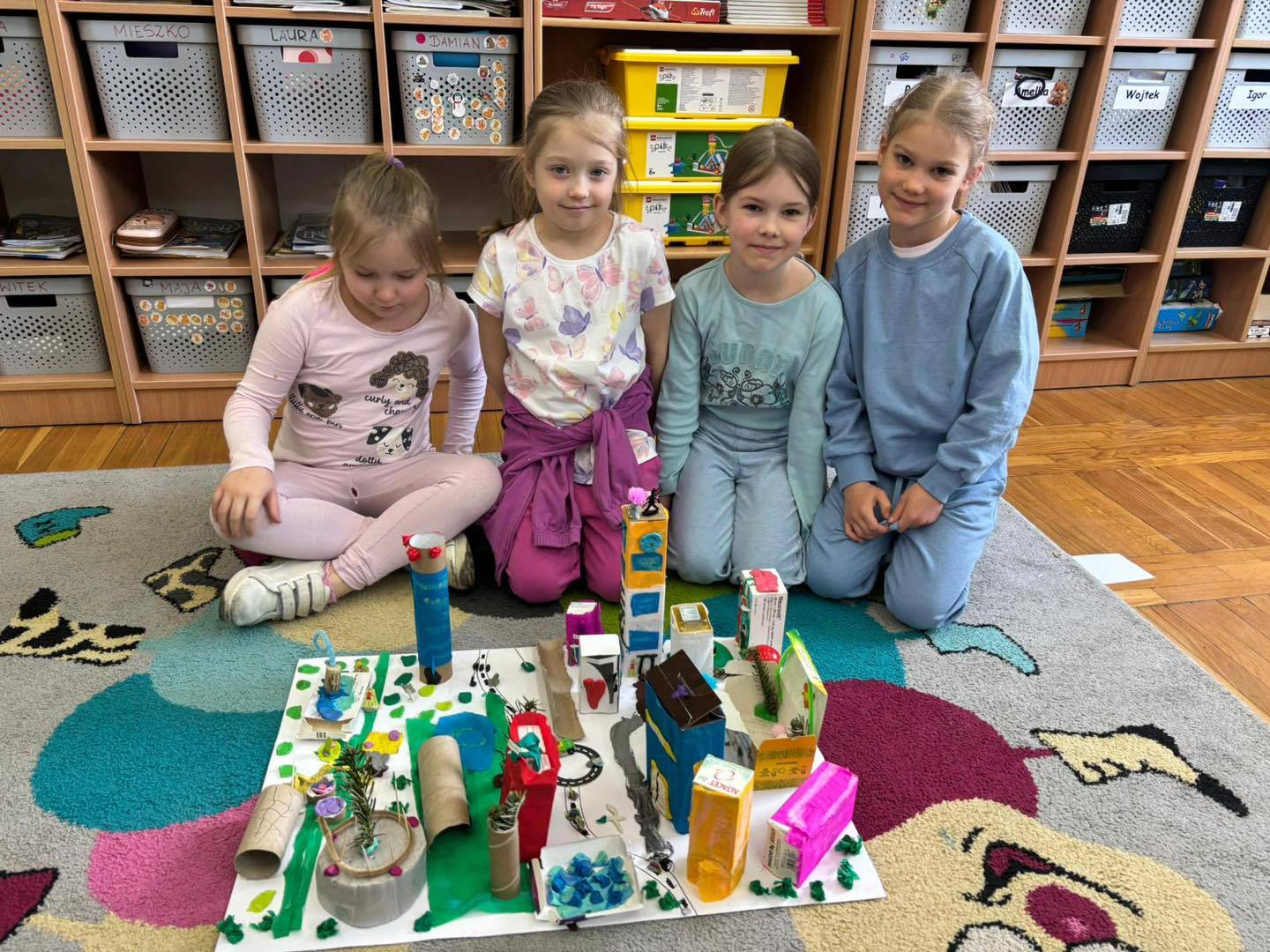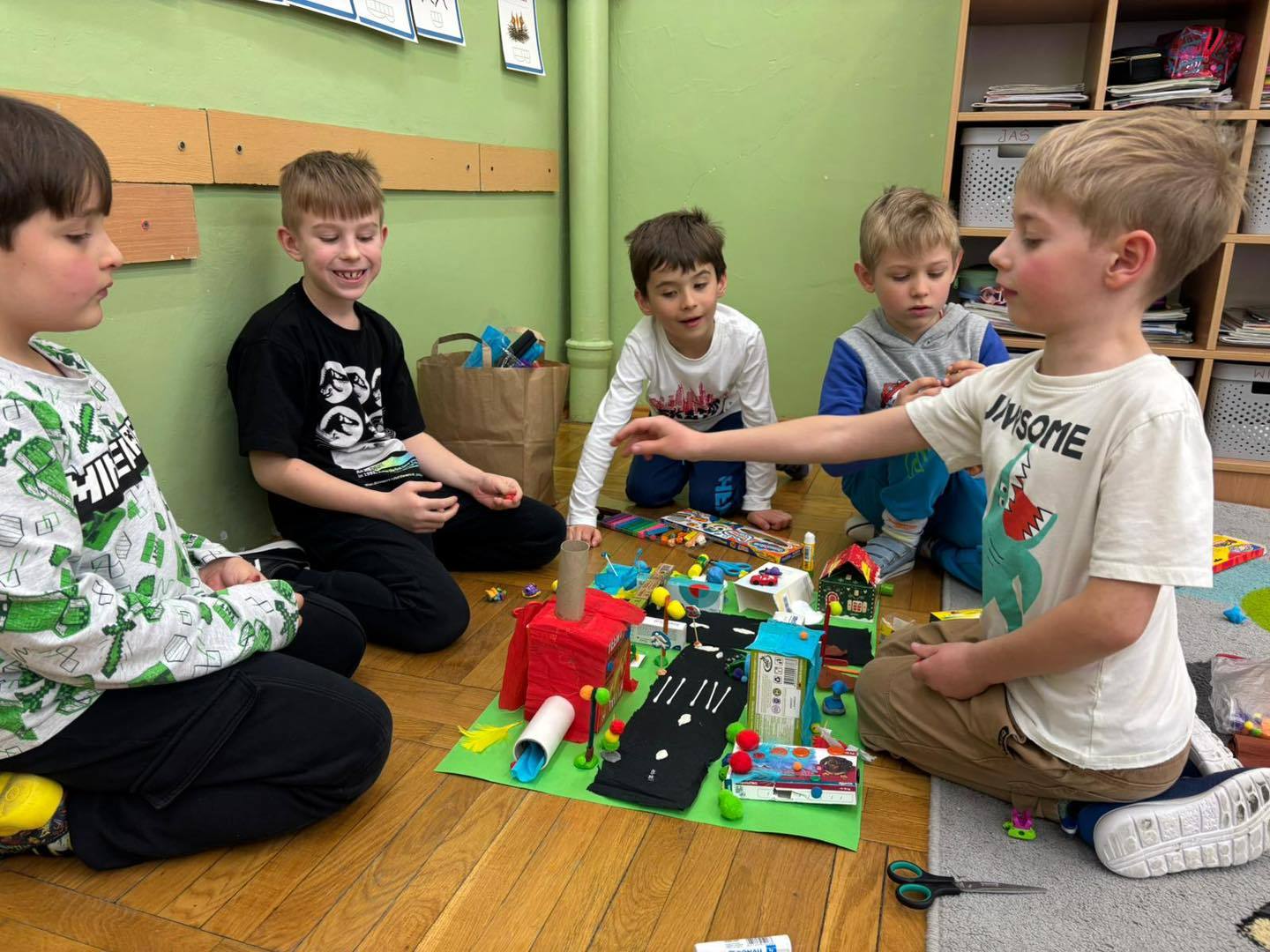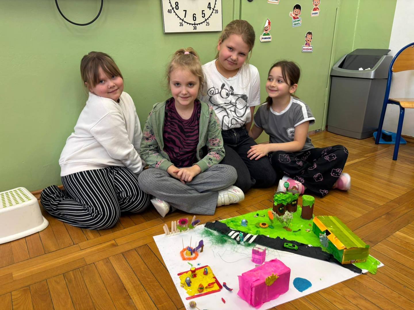 Zadanie rozwijało nie tylko kreatywność, ale także umiejętność współpracy, komunikacji i dzielenia się obowiązkami. Efektem były kolorowe, pełne pomysłów makiety, które pokazały, jak skuteczna i satysfakcjonująca może być nauka poprzez działanie.