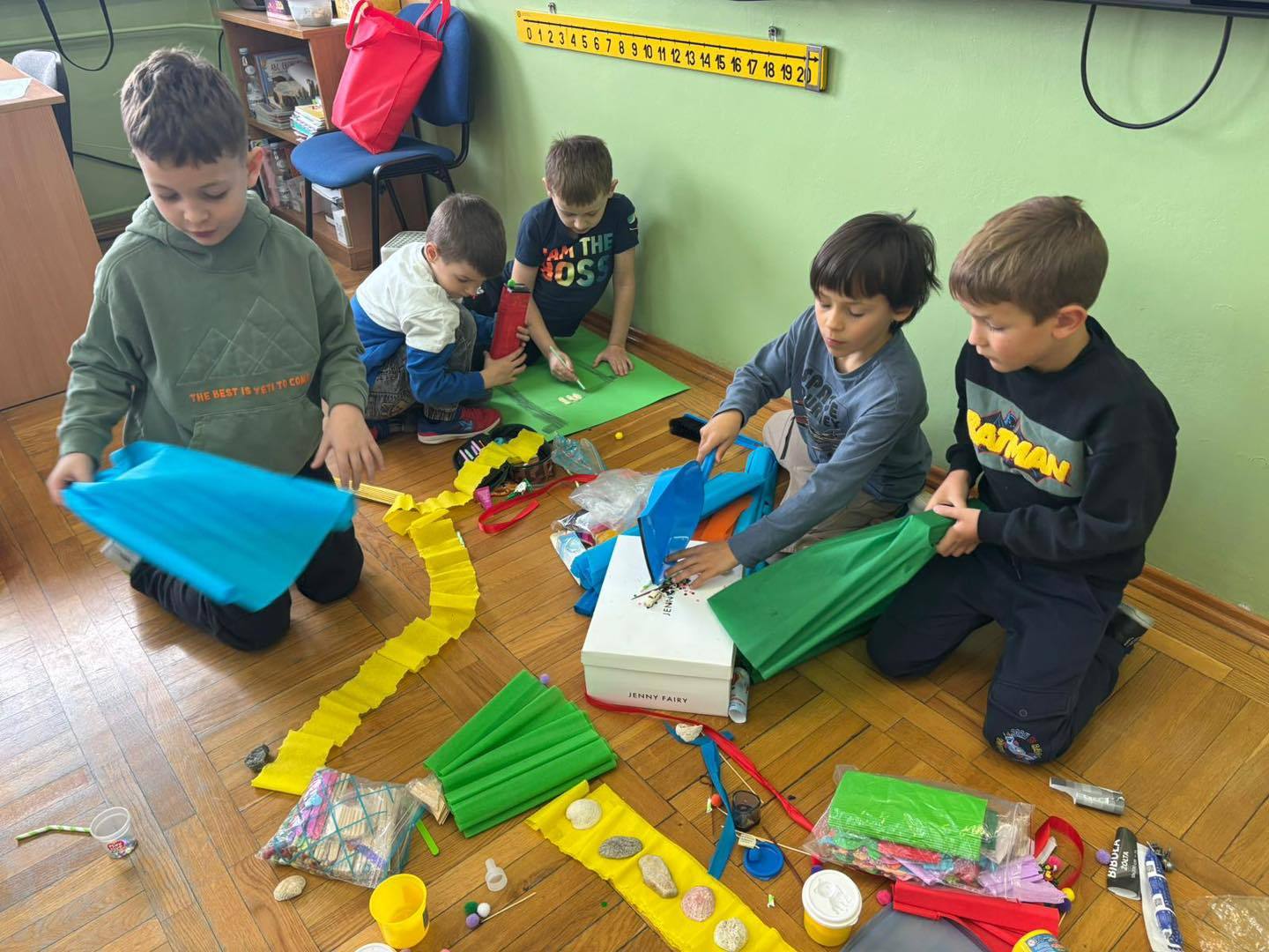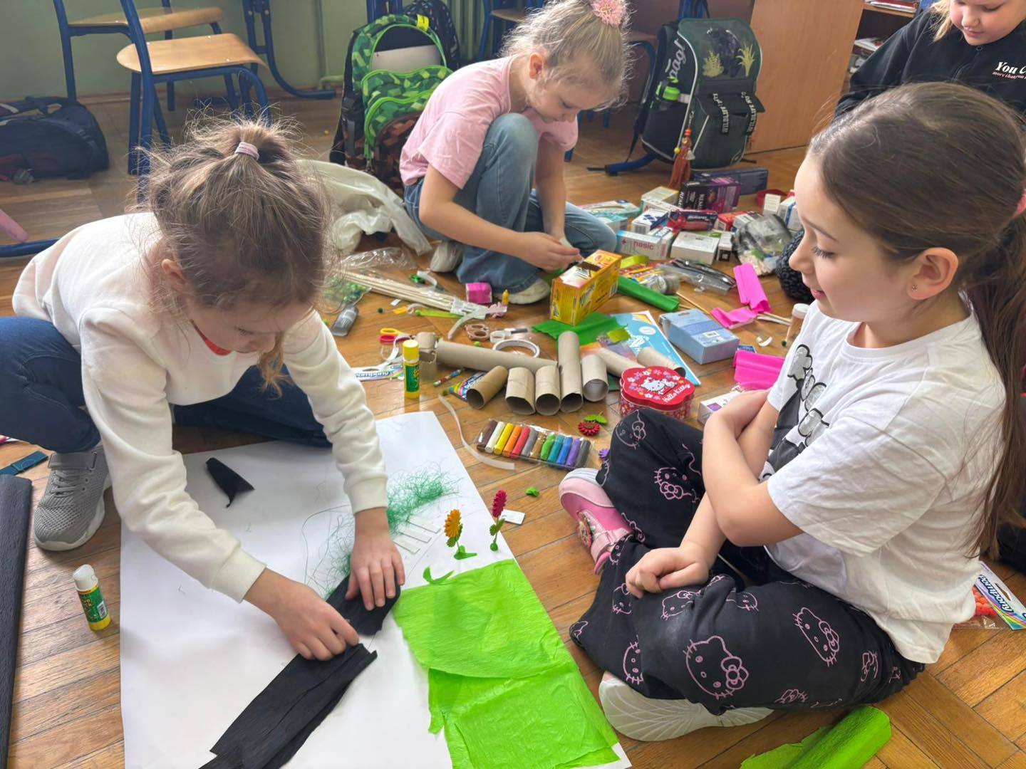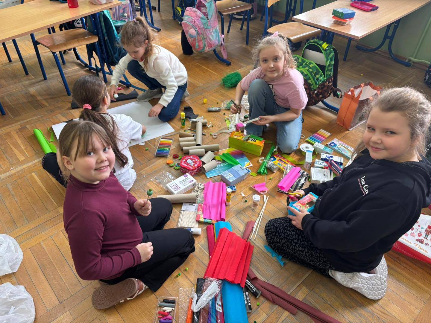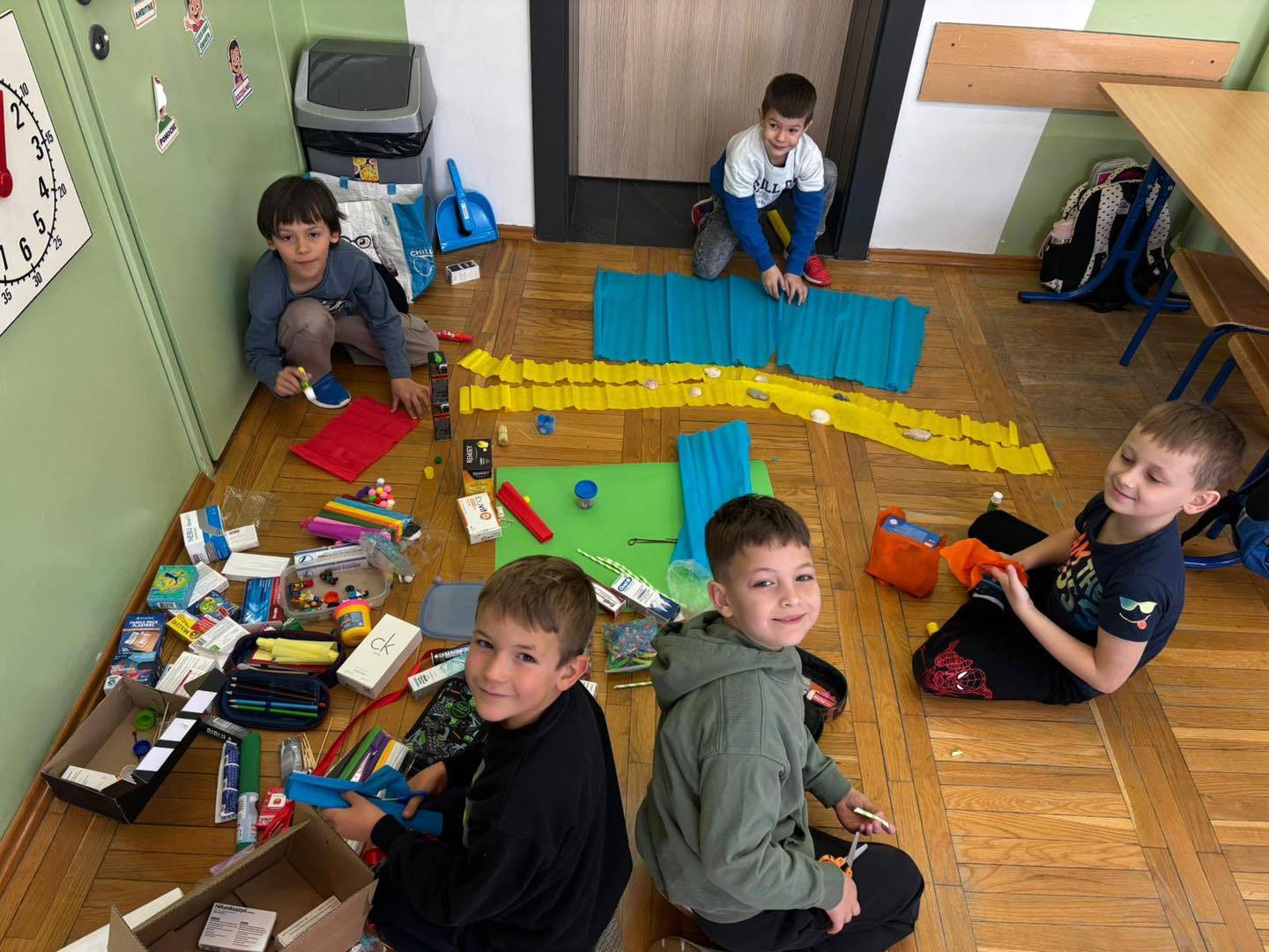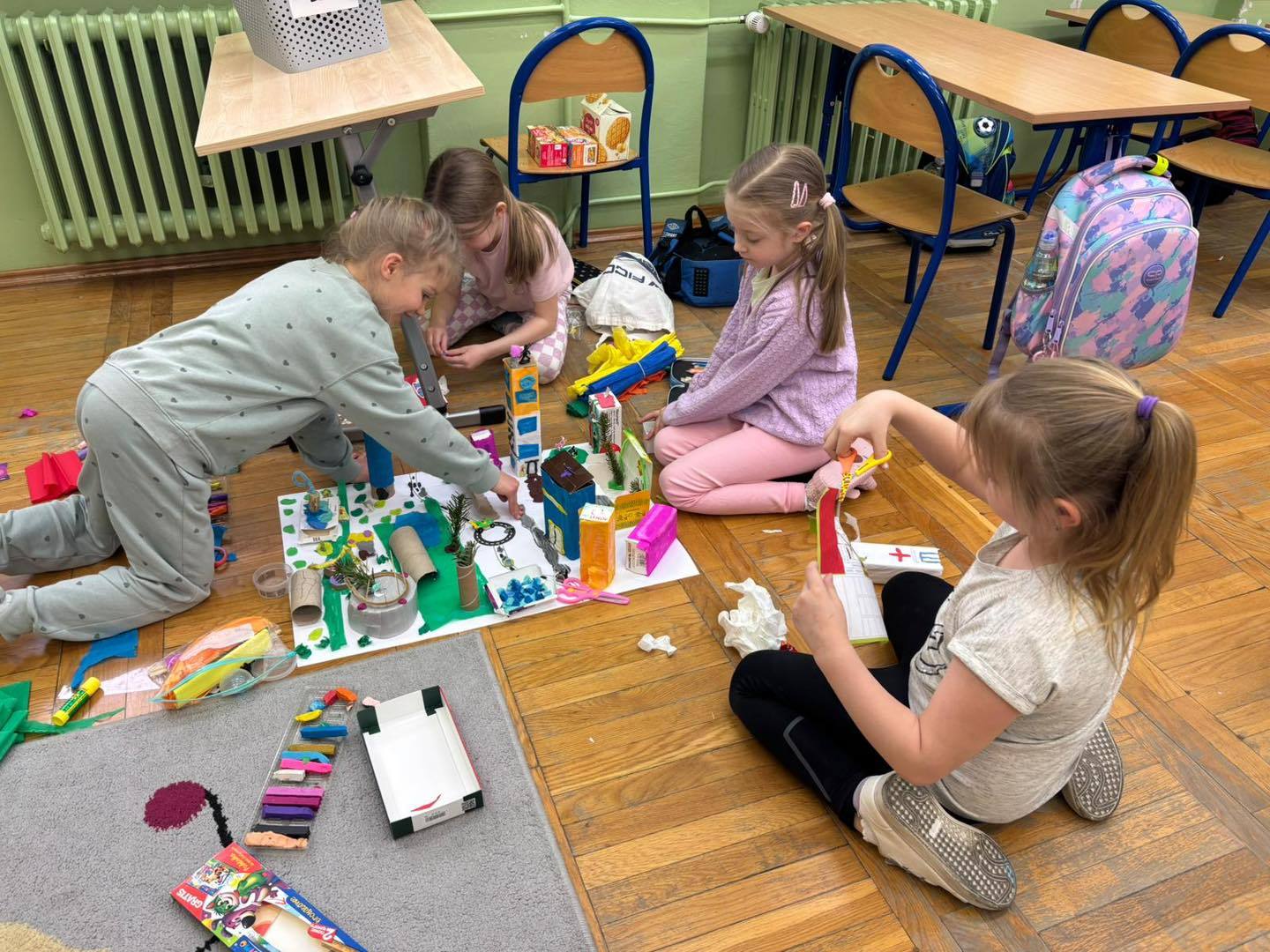 Zadanie rozwijało nie tylko kreatywność, ale także umiejętność współpracy, komunikacji i dzielenia się obowiązkami. Efektem były kolorowe, pełne pomysłów makiety, które pokazały, jak skuteczna i satysfakcjonująca może być nauka poprzez działanie.