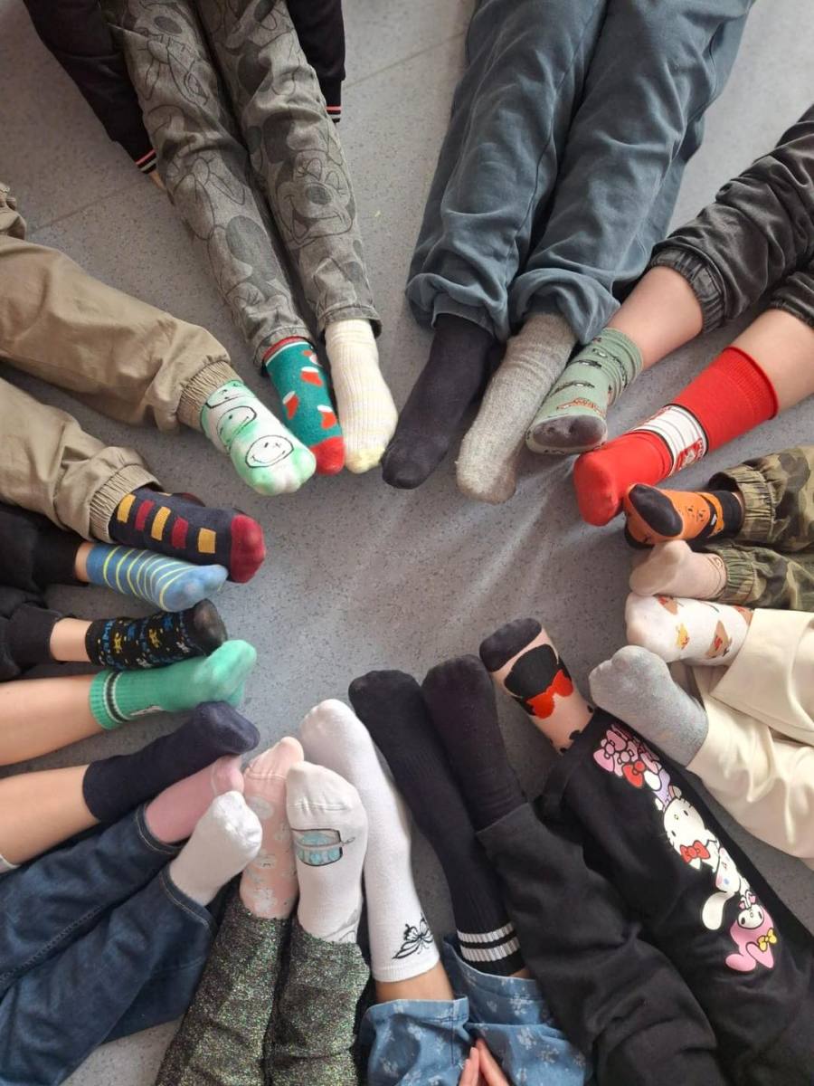 Symbolem tego dnia są kolorowe skarpetki nie do pary – znak niedopasowania chromosomów, ale także różnorodności i wyjątkowości. Uczniowie oraz nauczyciele aktywnie włączyli się w tę akcję, przychodząc do szkoły w różnych, kolorowych skarpetkach.
