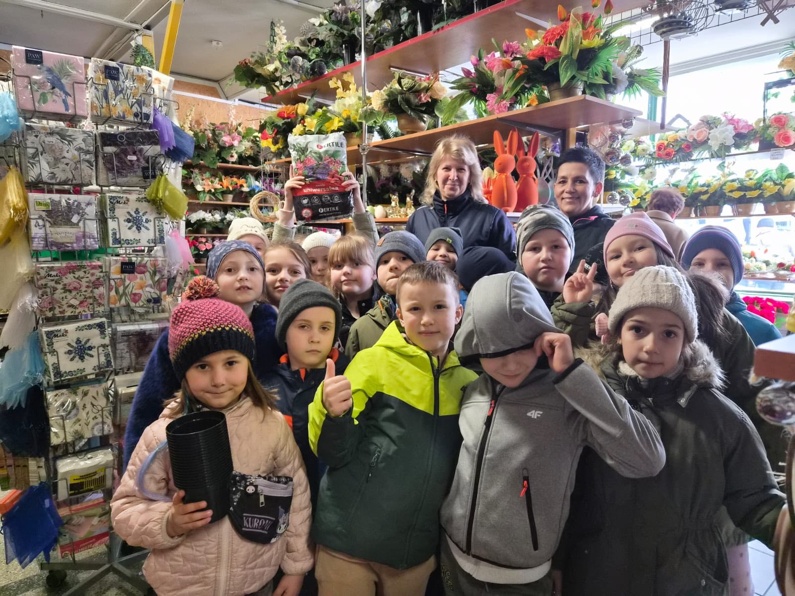 Klasa 1c wybrała się na wyjątkową wycieczkę do sklepu ogrodniczego, gdzie dzieci zakupiły doniczki, ziemię oraz ziarna owsa