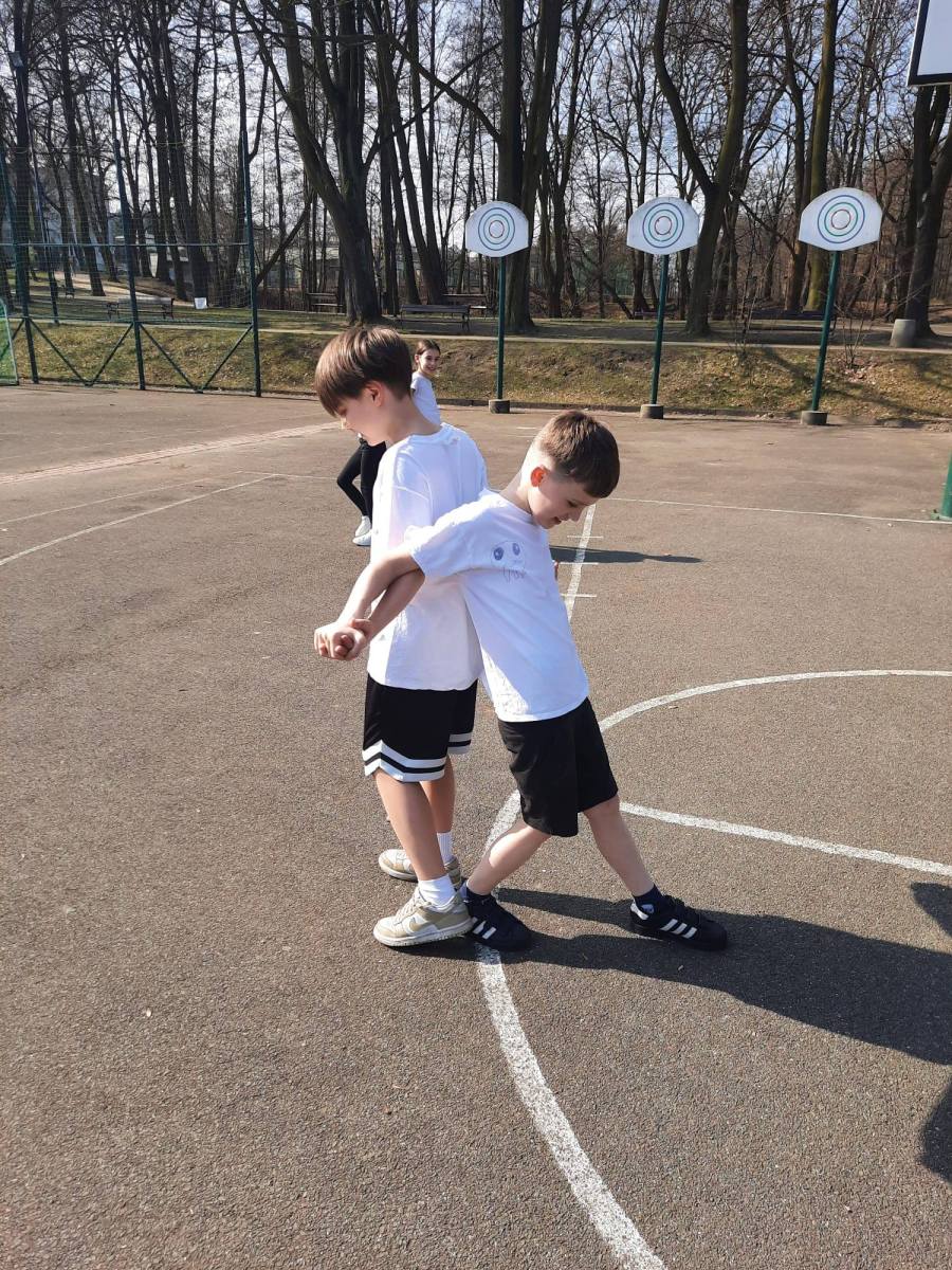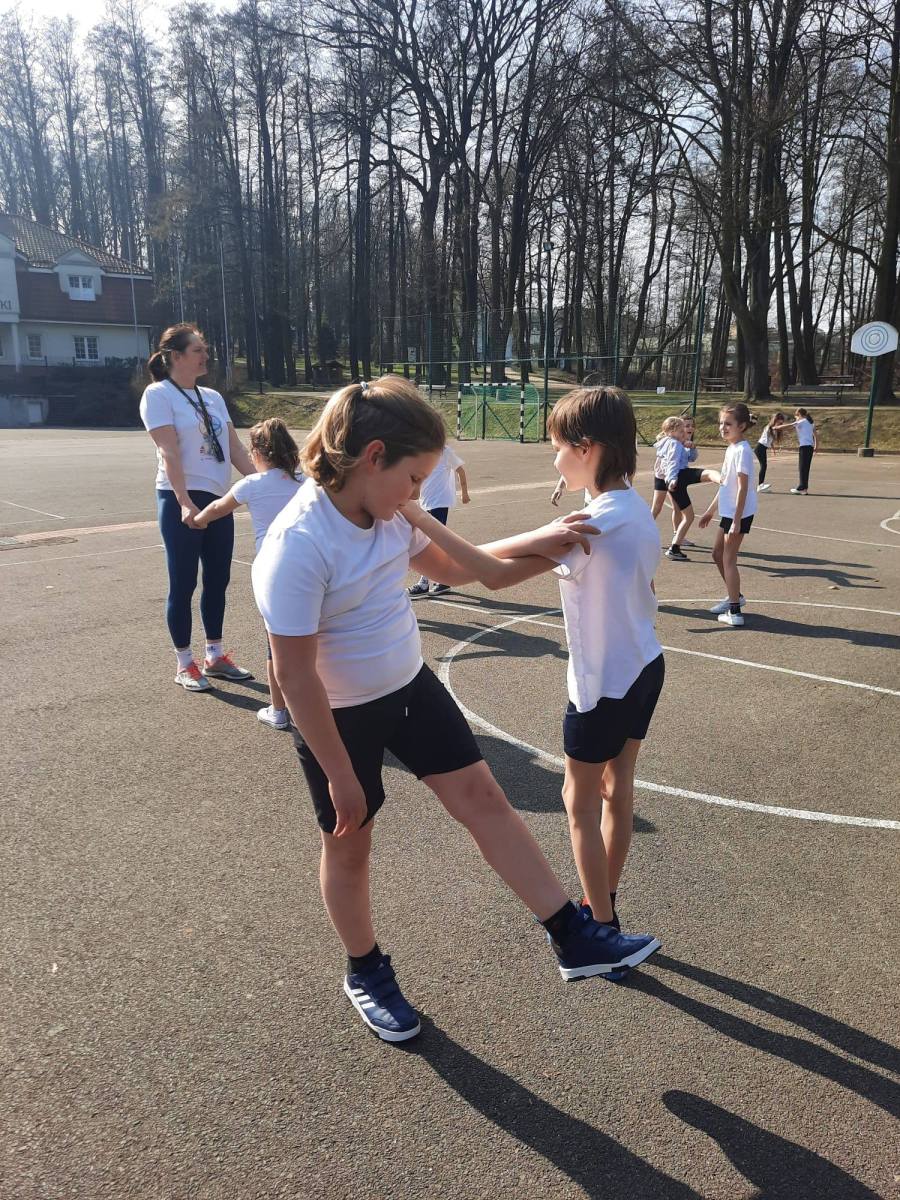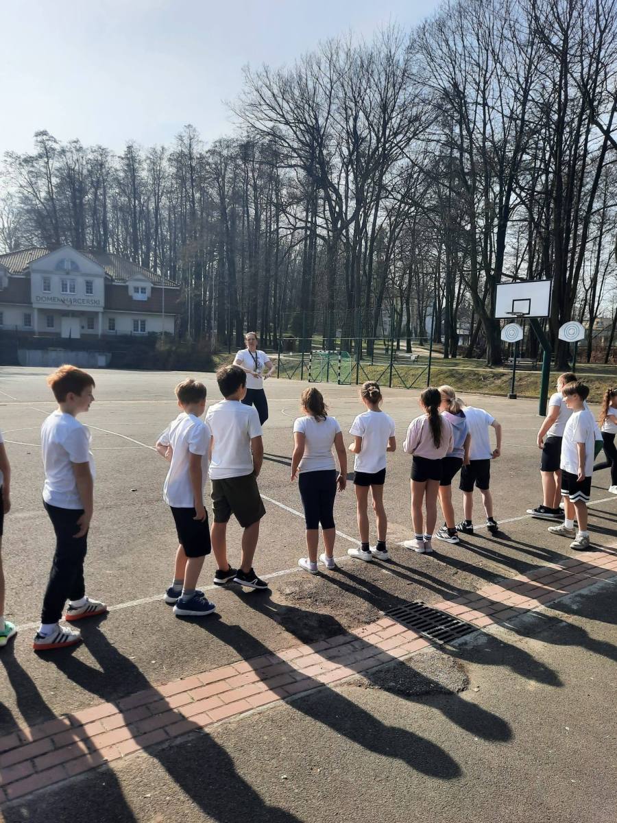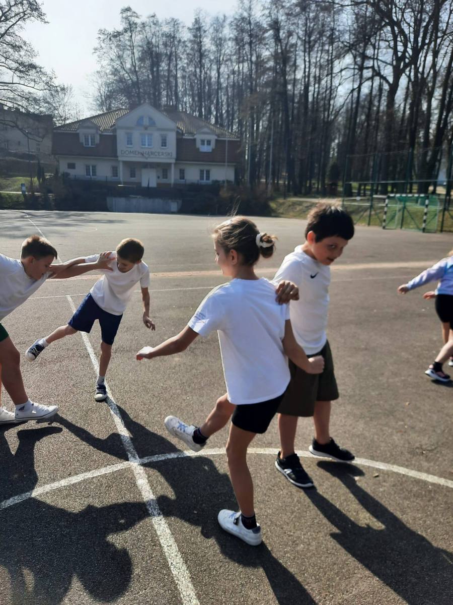 Zajęcia prowadzone w klasie 3b w ramach realizacji programu Mały Mistrz. Program pozwala na współpracę nauczyciela edukacji wczesnoszkolnej i nauczyciela współorganizującego kształcenie z nauczycielem wychowania fizycznego.