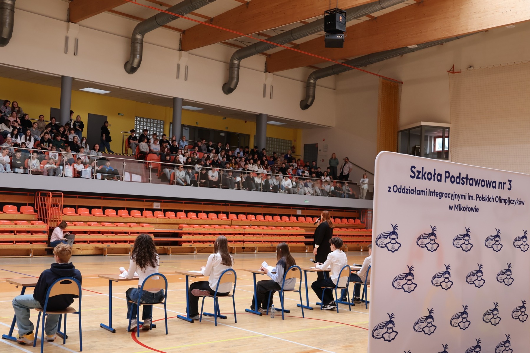 Aż 7 kandydatów do MRM zaprezentowało się przed swoimi wyborcami na hali MOSiR Mikołów. To było niesamowite wyzwanie wystąpić przed wszystkimi uczniami klas 4-8.