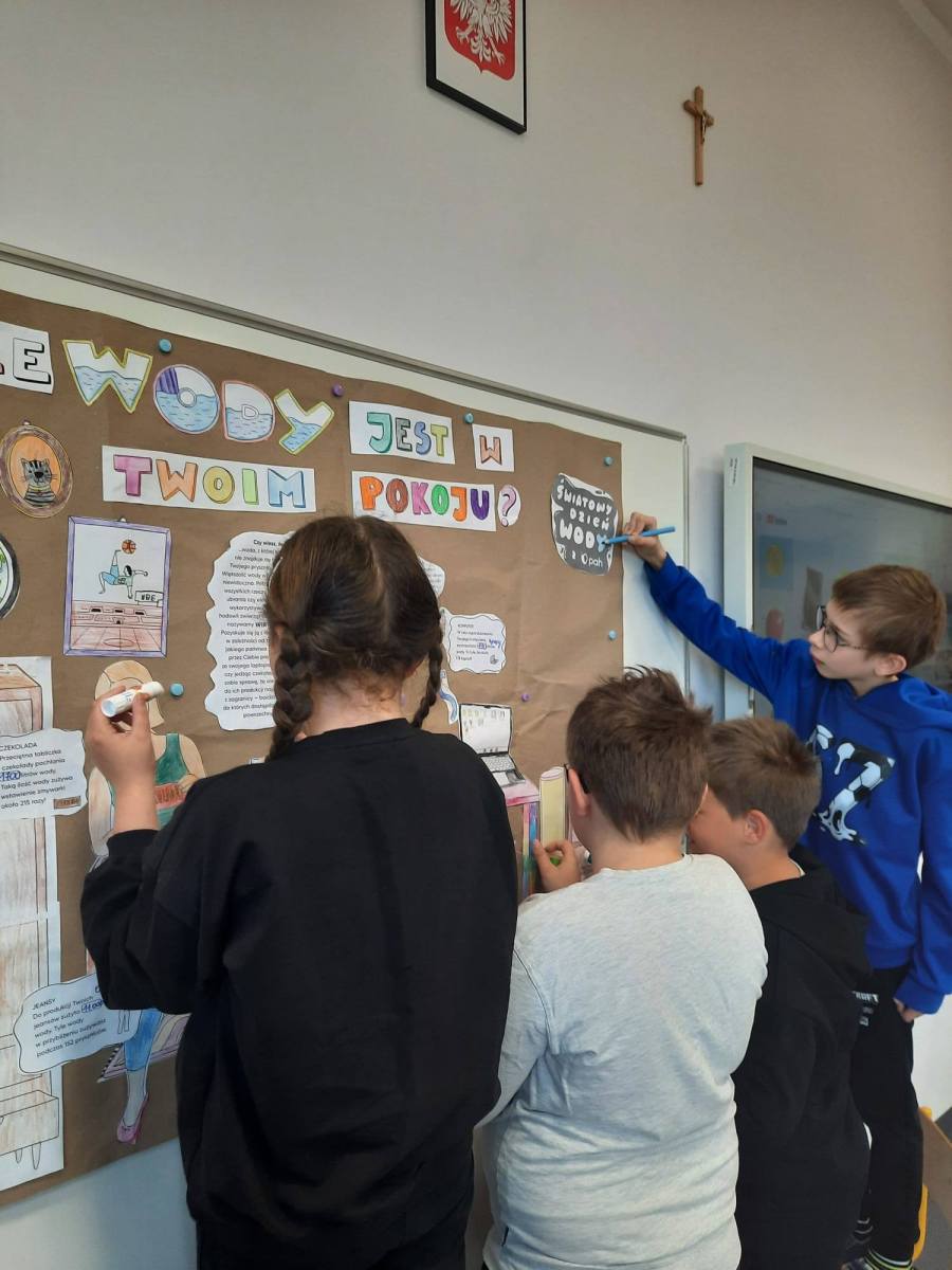 Klasy 3a i 3b brały udział w akcji Światowy Dzień Wody z Polską Akcją Humanitarną. Celem akcji było uświadomienie uczniom, że dostęp do czystej wody to prawo człowieka, a na świecie nie wszyscy mają dostęp do bezpiecznej czystej wody pitnej. Zrealizowano ścieżkę edukacyjną, która skupiona była wokół zagadnienia wirtualnej wody i naszych indywidualnych wyborów wpływających na jej globalne zużycie. Realizując zagadnienia, uczniowie pracowali w grupach, wysłuchali opowiadania z książki pt. ,, Woda'”, rozwiązali Quiz o wirtualnej wodzie, obejrzeli filmy ,, Woda nie tylko w kranie”, ,, Oszczędzanie wody to za mało”. Każda klasa wykonała szkolną gazetkę. Wszystkie działania uczniów skupiały się wokół tematyki wirtualnej wody.