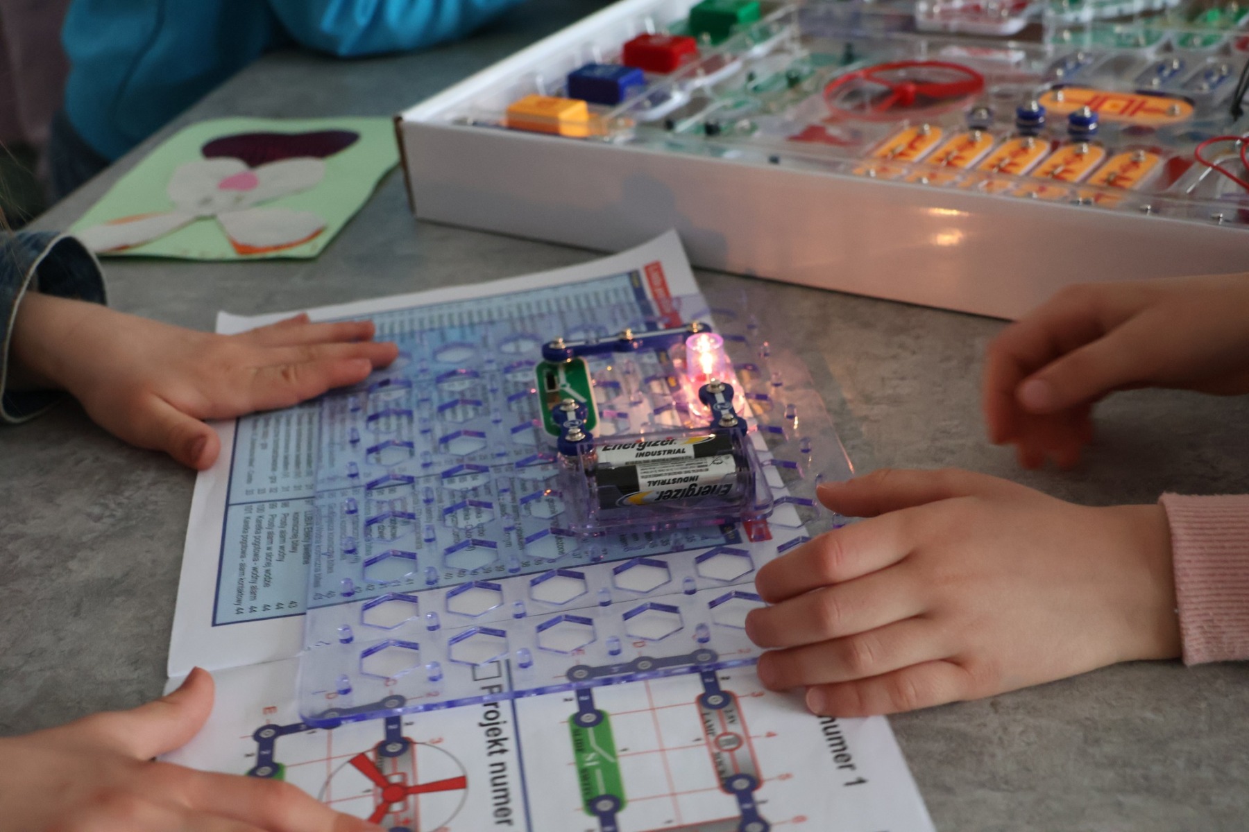 Zwiedziły salę edukacji wczesnoszkolnej, gdzie odbyły się krótkie warsztaty plastyczne, salę do zajęć szachowych, salę rewalidacji ruchowej ze sportowym torem przeszkód, sale językowe oraz pracownie: fizyczną, chemiczną, geograficzną i biologiczną.