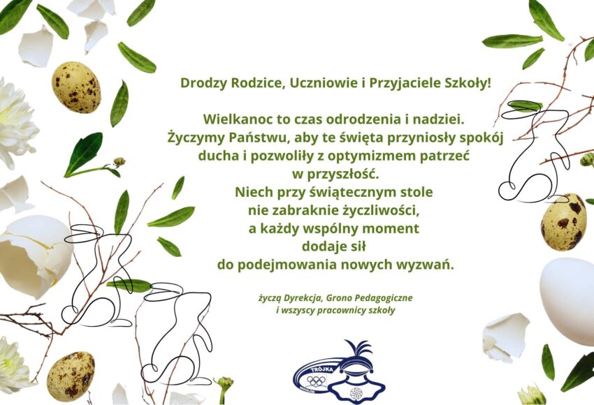 Drodzy Rodzice, Uczniowie i Przyjaciele Szkoły! Wielkanoc to czas odrodzenia i nadziei. Życzymy Państwu, aby te święta przyniosły spokój ducha i pozwoliły z optymizmem patrzeć w przyszłość. Niech przy świątecznym stole nie zabraknie życzliwości, a każdy wspólny moment dodaje sił do podejmowania nowych wyzwań. życzą Dyrekcja, Grono Pedagogiczne i wszyscy […]